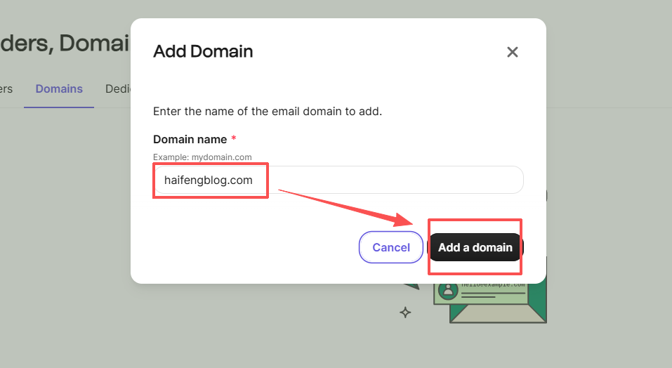 域名绑定是将你自己的域名配置为邮件发送地址的过程,而不是使用Brevo默认的发送域。(比如我的是sbb@haifengblog.top,那么需要验证的域就是后面那个haifengblog.top)